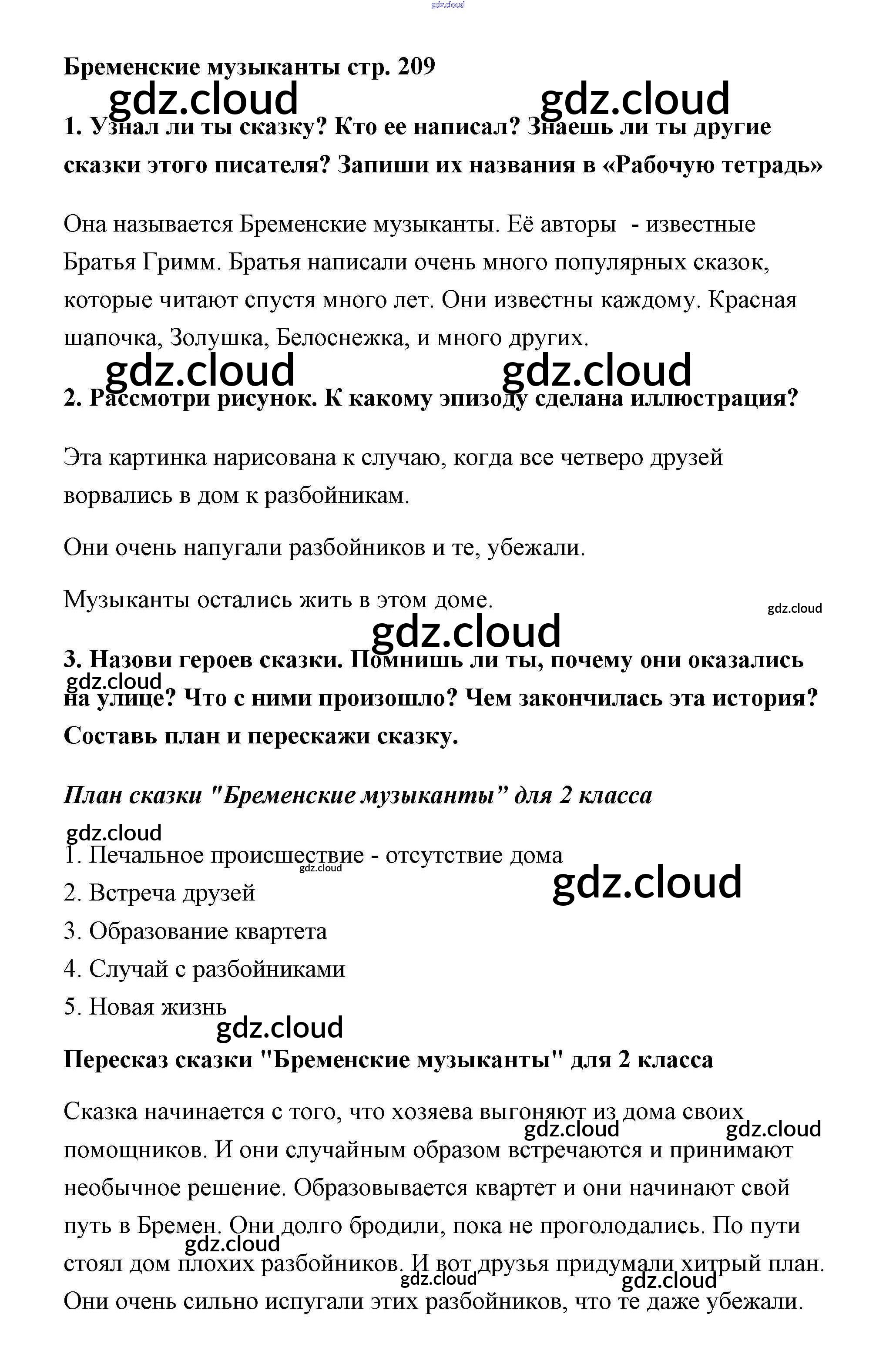 Ответ на задание 209 Учебник Литература за 2 (второй) класс Климанова, Горецкий, Голованова Школа России 2018 Часть 1, 2