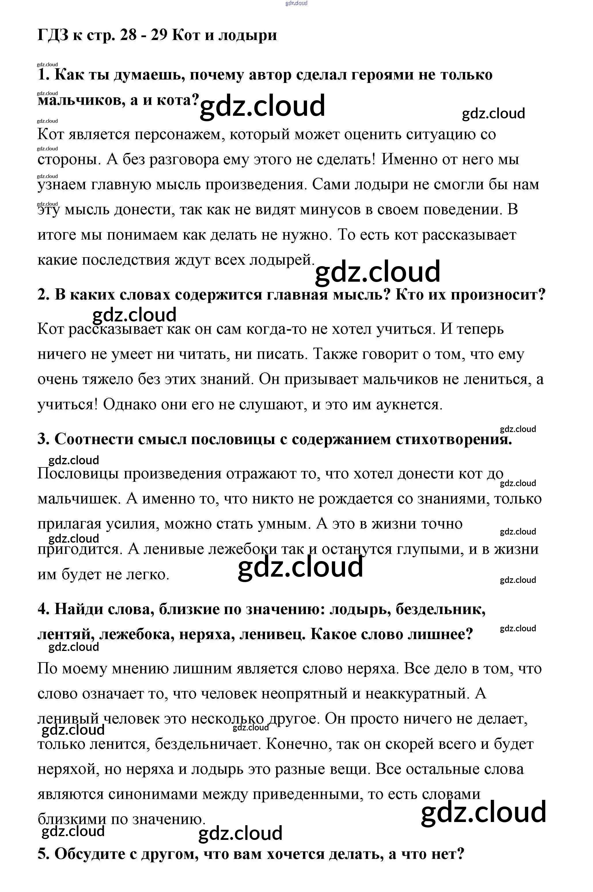 Ответ на задание 28-29 Учебник Литература за 2 (второй) класс Климанова, Горецкий, Голованова Школа России 2018 Часть 1, 2