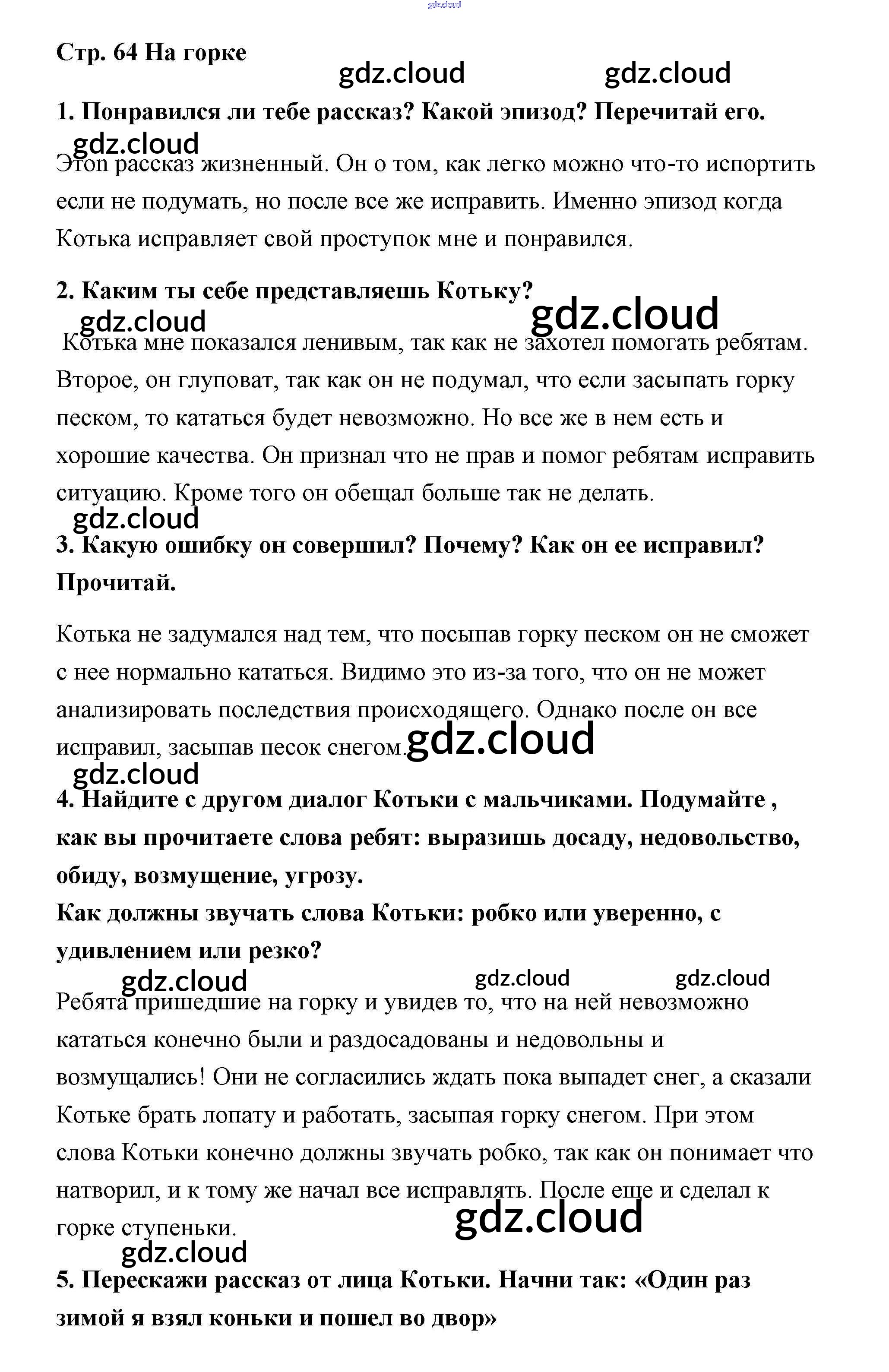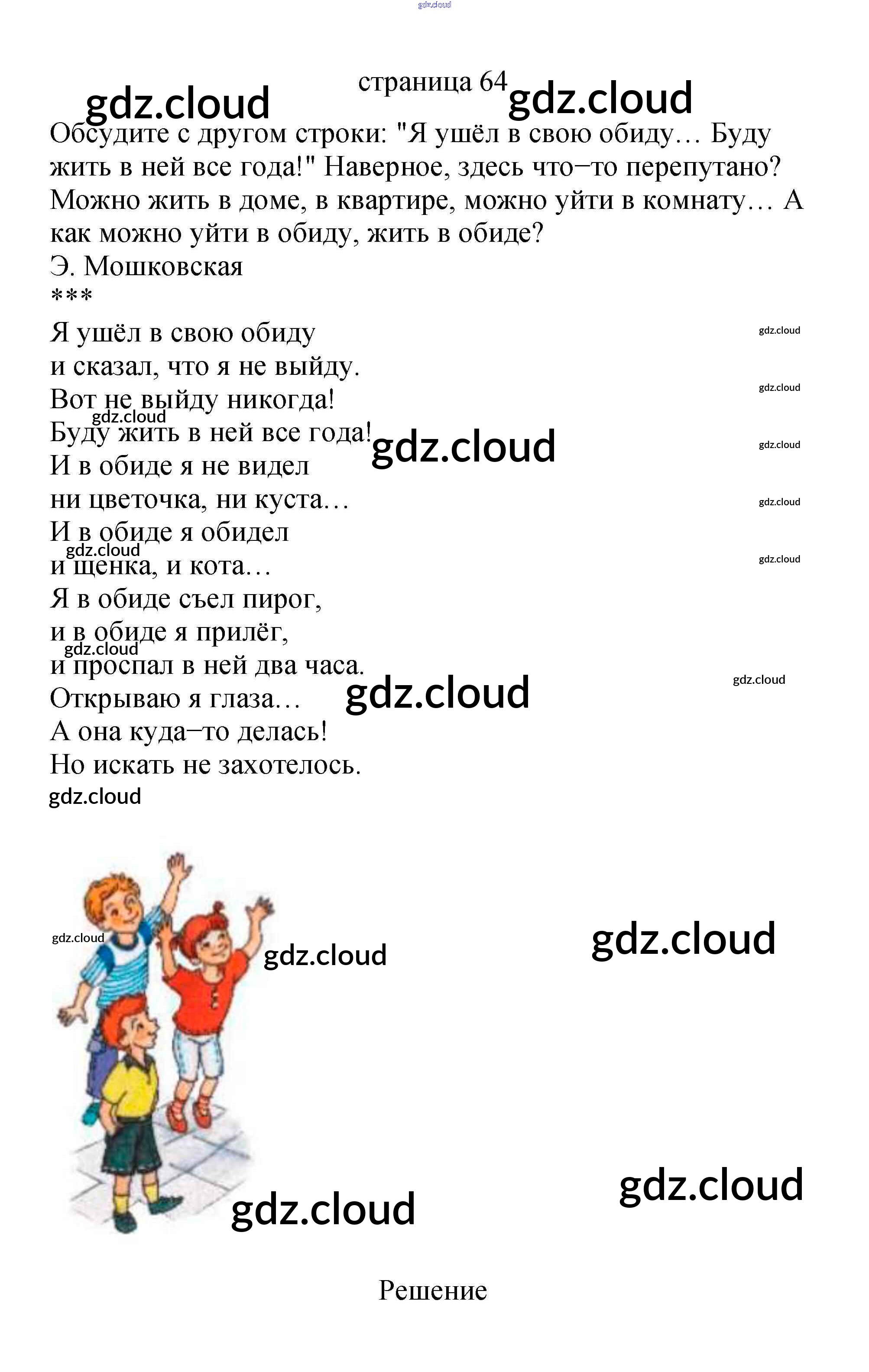 Ответ на задание 64 Учебник Литература за 2 (второй) класс Климанова, Горецкий, Голованова Школа России 2018 Часть 1, 2