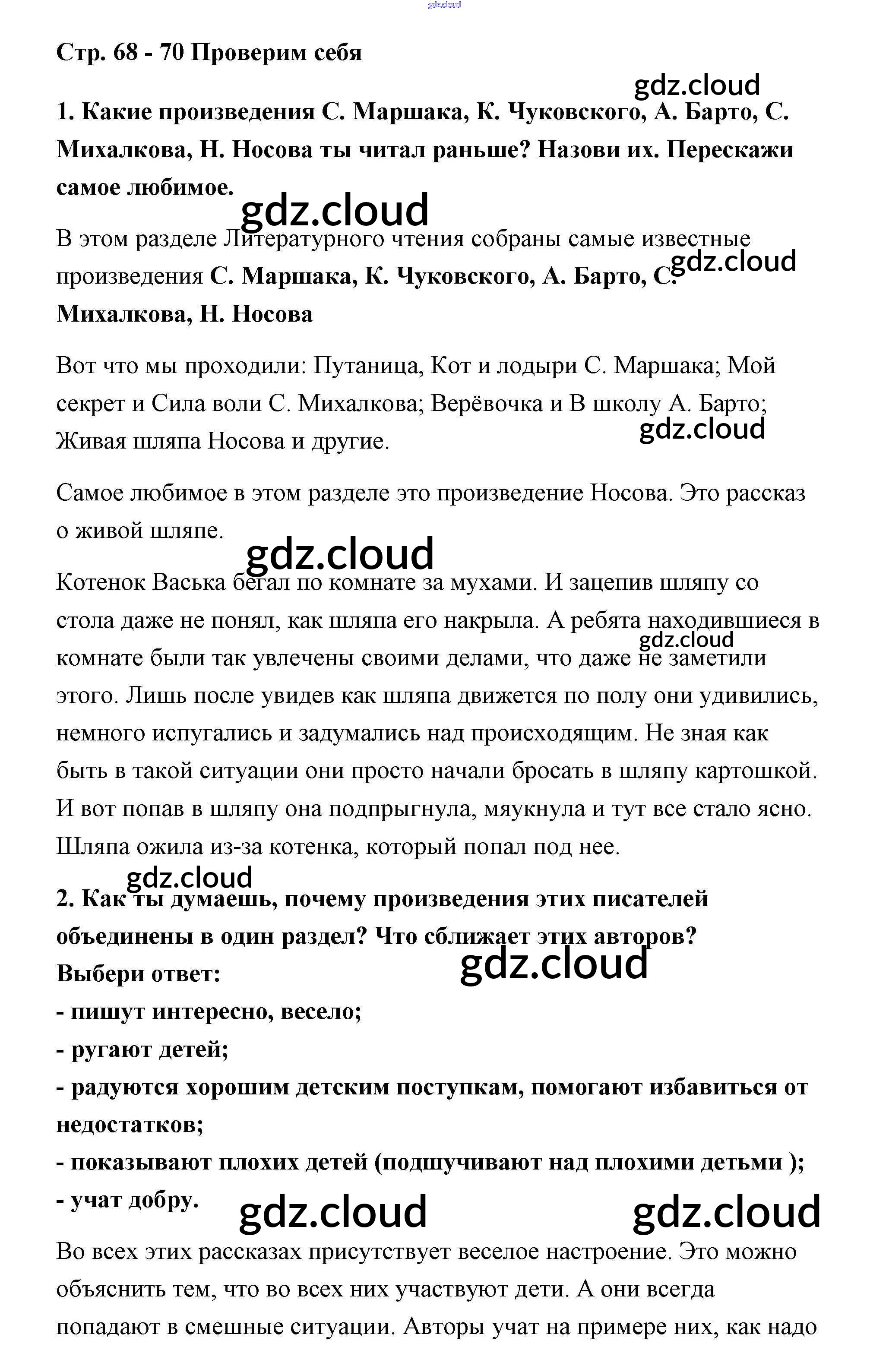 Ответ на задание 68-70 Учебник Литература за 2 (второй) класс Климанова, Горецкий, Голованова Школа России 2018 Часть 1, 2