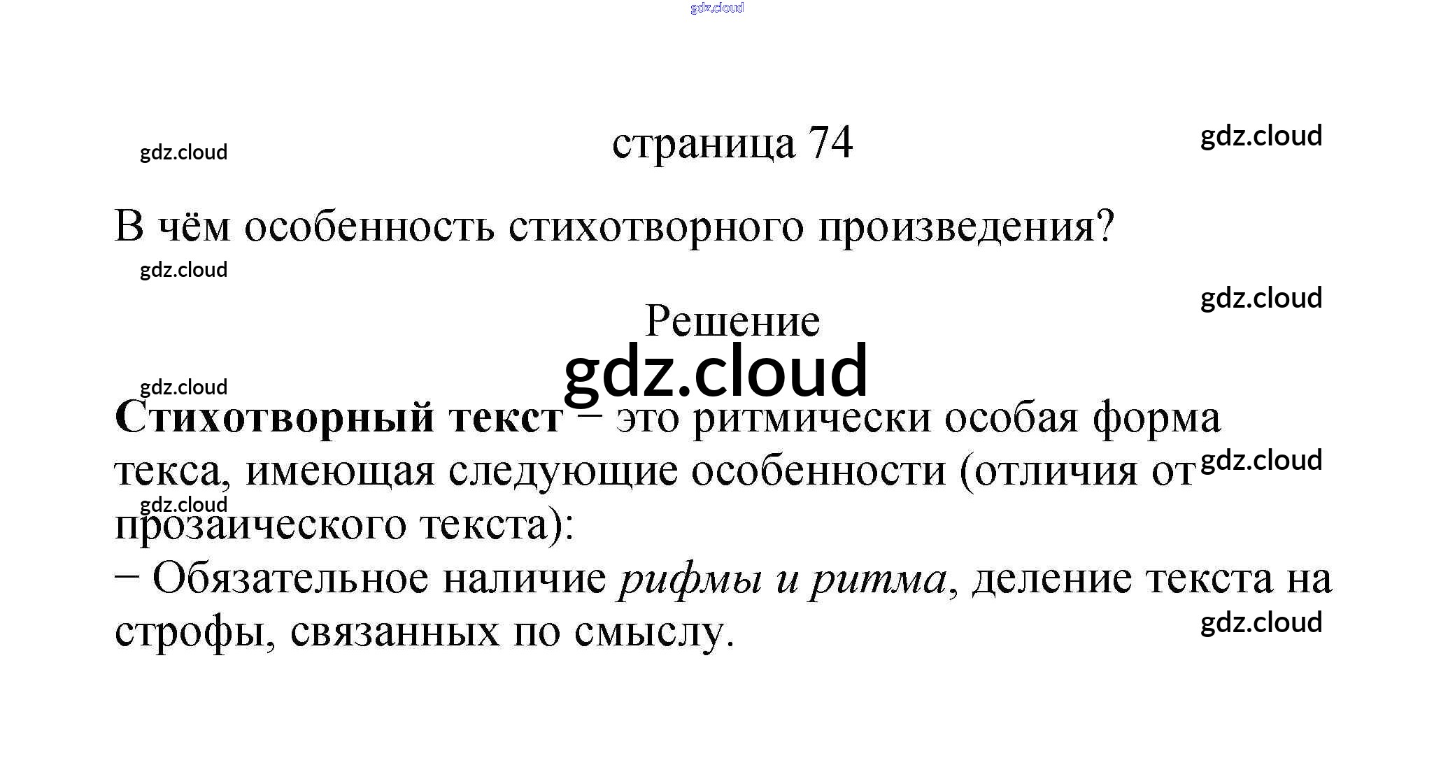 Ответ на задание 74 Учебник Литература за 2 (второй) класс Климанова, Горецкий, Голованова Школа России 2018 Часть 1, 2