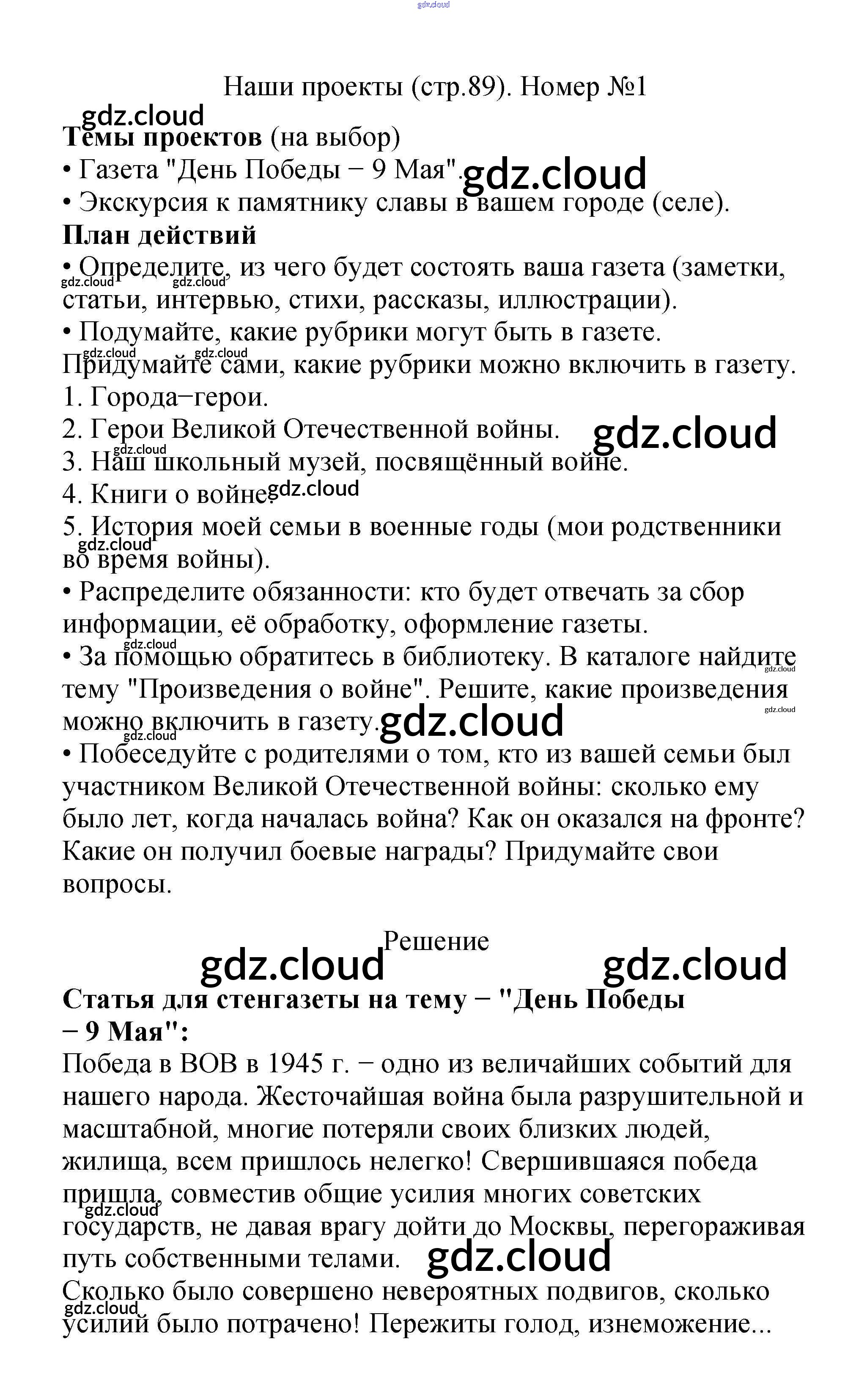 Ответ на задание 89 Учебник Литература за 2 (второй) класс Климанова, Горецкий, Голованова Школа России 2018 Часть 1, 2
