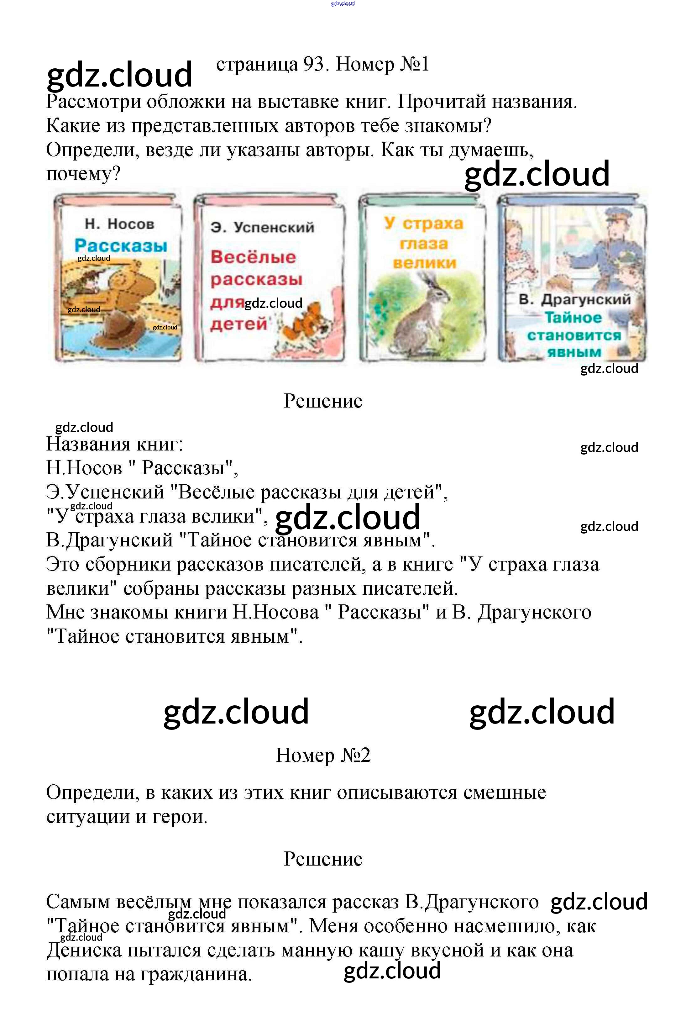 Ответ на задание 93 Учебник Литература за 2 (второй) класс Климанова, Горецкий, Голованова Школа России 2018 Часть 1, 2