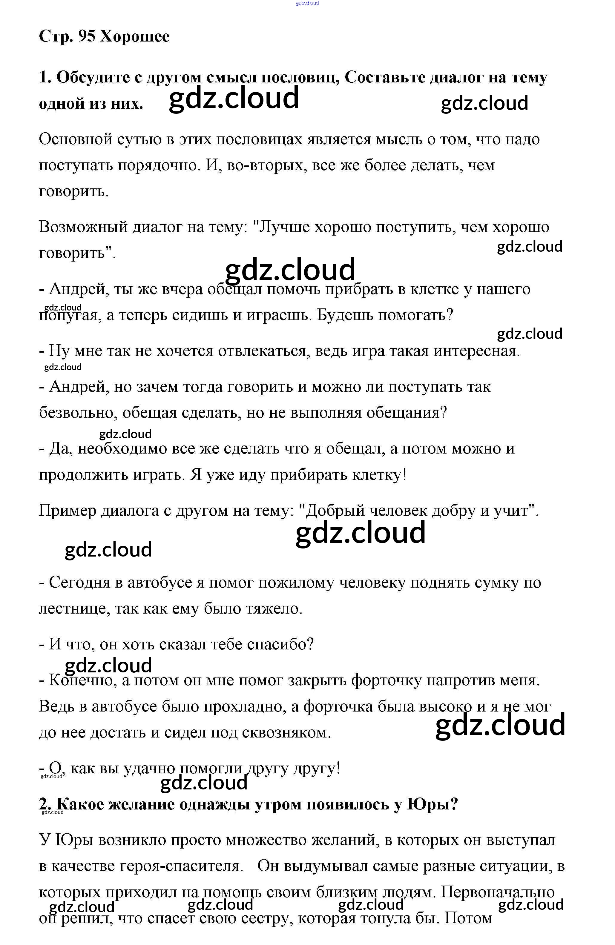 Ответ на задание 95 Учебник Литература за 2 (второй) класс Климанова, Горецкий, Голованова Школа России 2018 Часть 1, 2