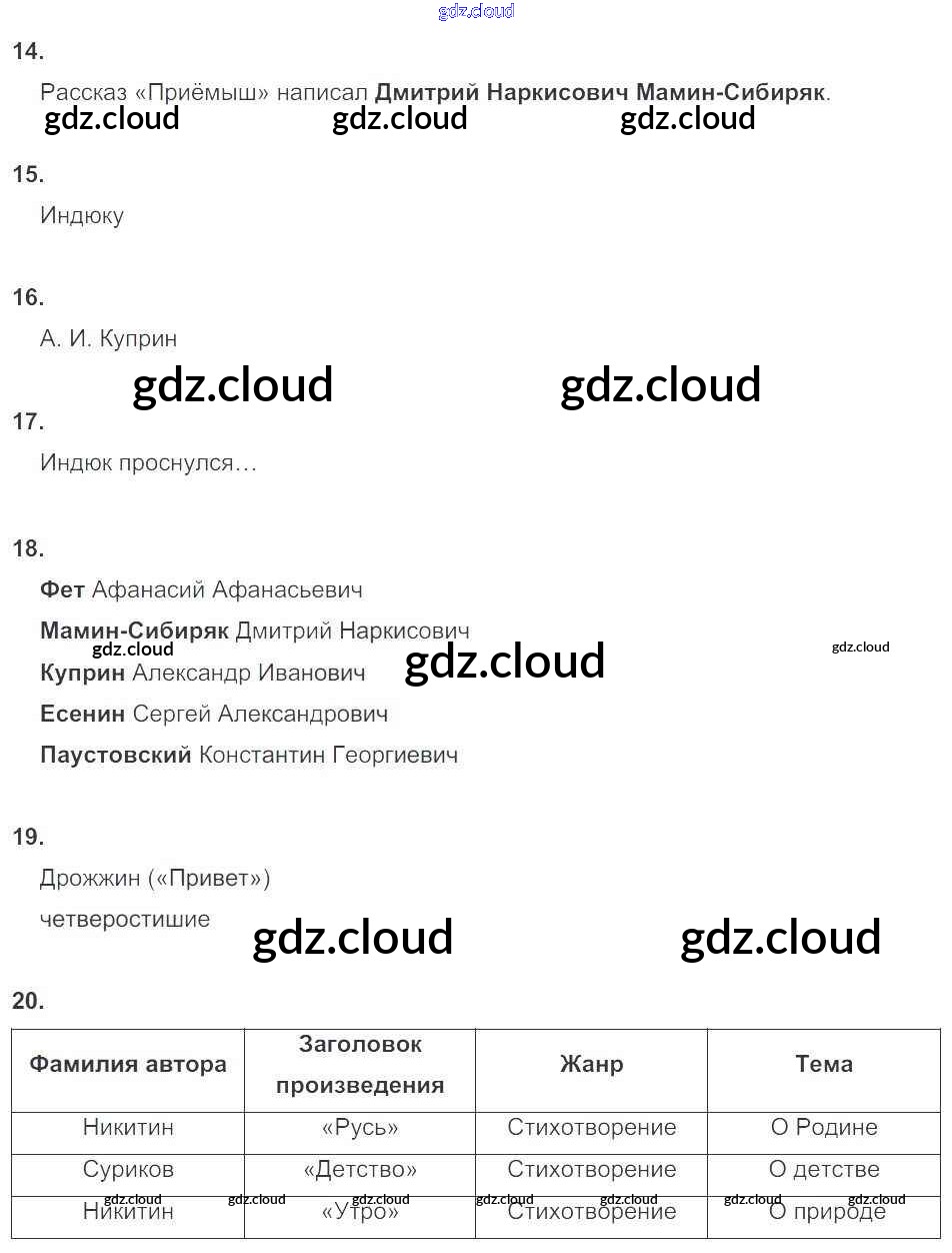Ответы к Части 2 по Литературе 3 класс Тетрадь для контрольных работ Ефросинина Начальная школа XXI века Часть 1, 2 Вентана-граф