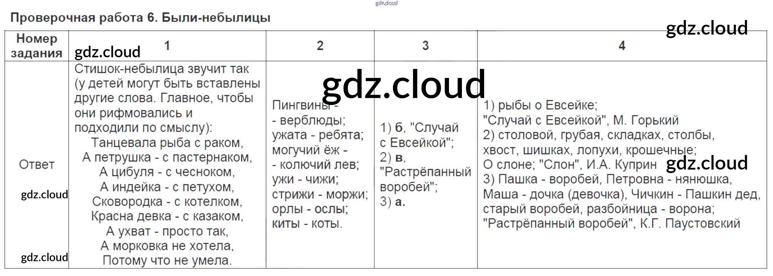 Ответ на задание 6 Контрольно-измерительные материалы (КИМ) Литература за 3 (третий) класс Кутявина 2017