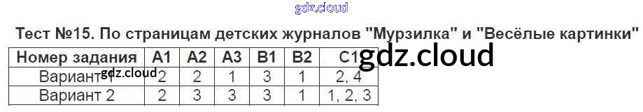 Ответ на задание 15 Контрольно-измерительные материалы (КИМ) Литература за 3 (третий) класс Кутявина 2017 ФГОС онлайн и без номера телефона.