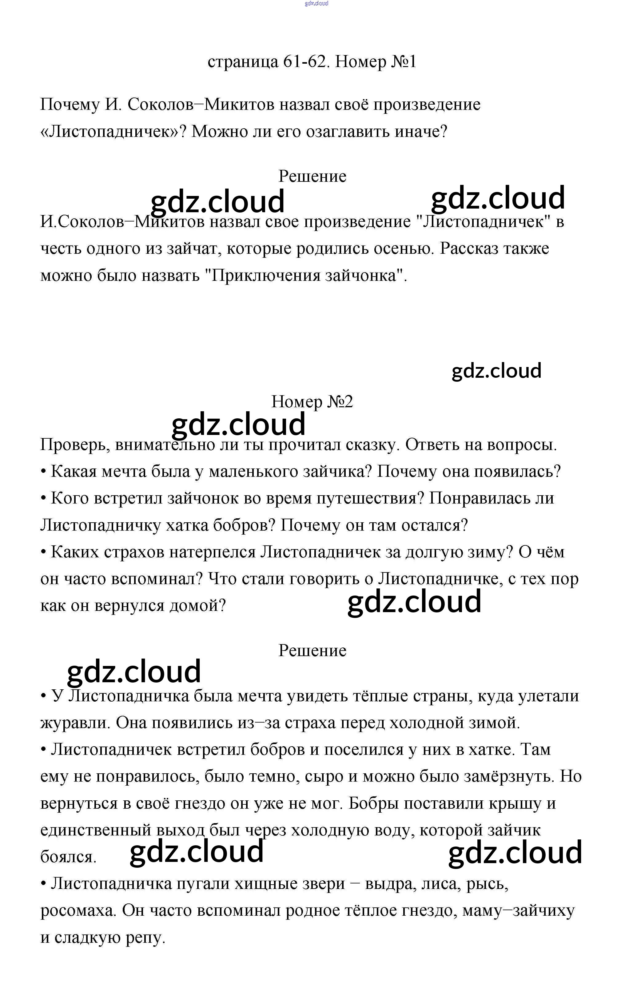 Ответ на задание 61 Учебник Литература за 3 (третий) класс Климанова, Горецкий Школа России 2020 Часть 1, 2