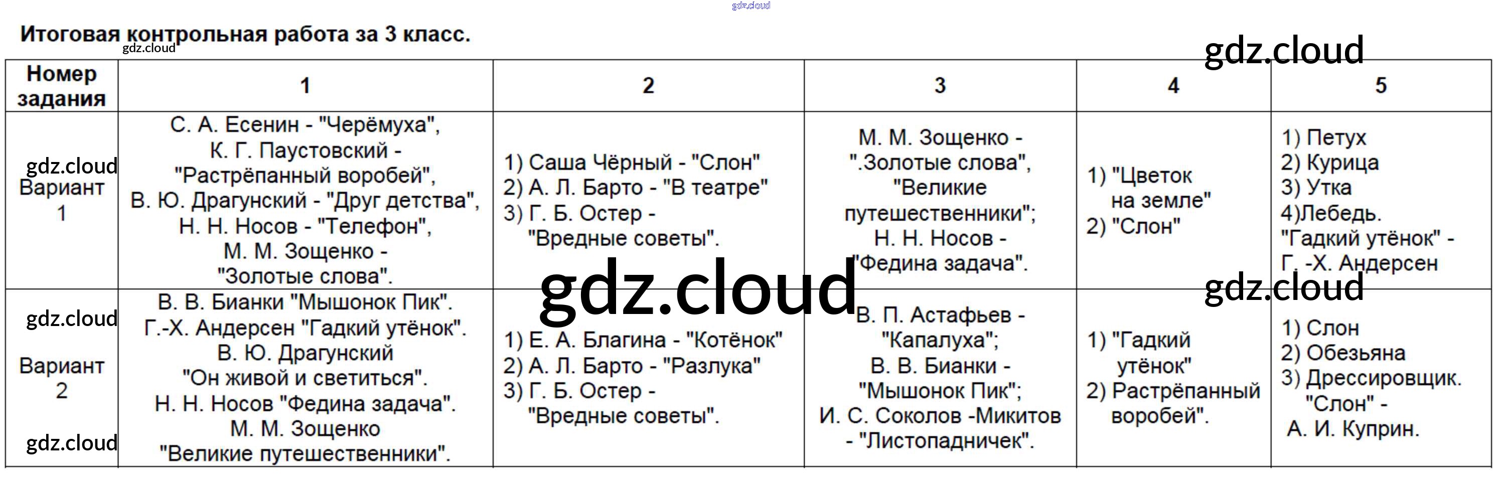 Ответы к Итоговой работе по Литературе 3 класс Контрольно-измерительные материалы (КИМ) Шубина Экзамен