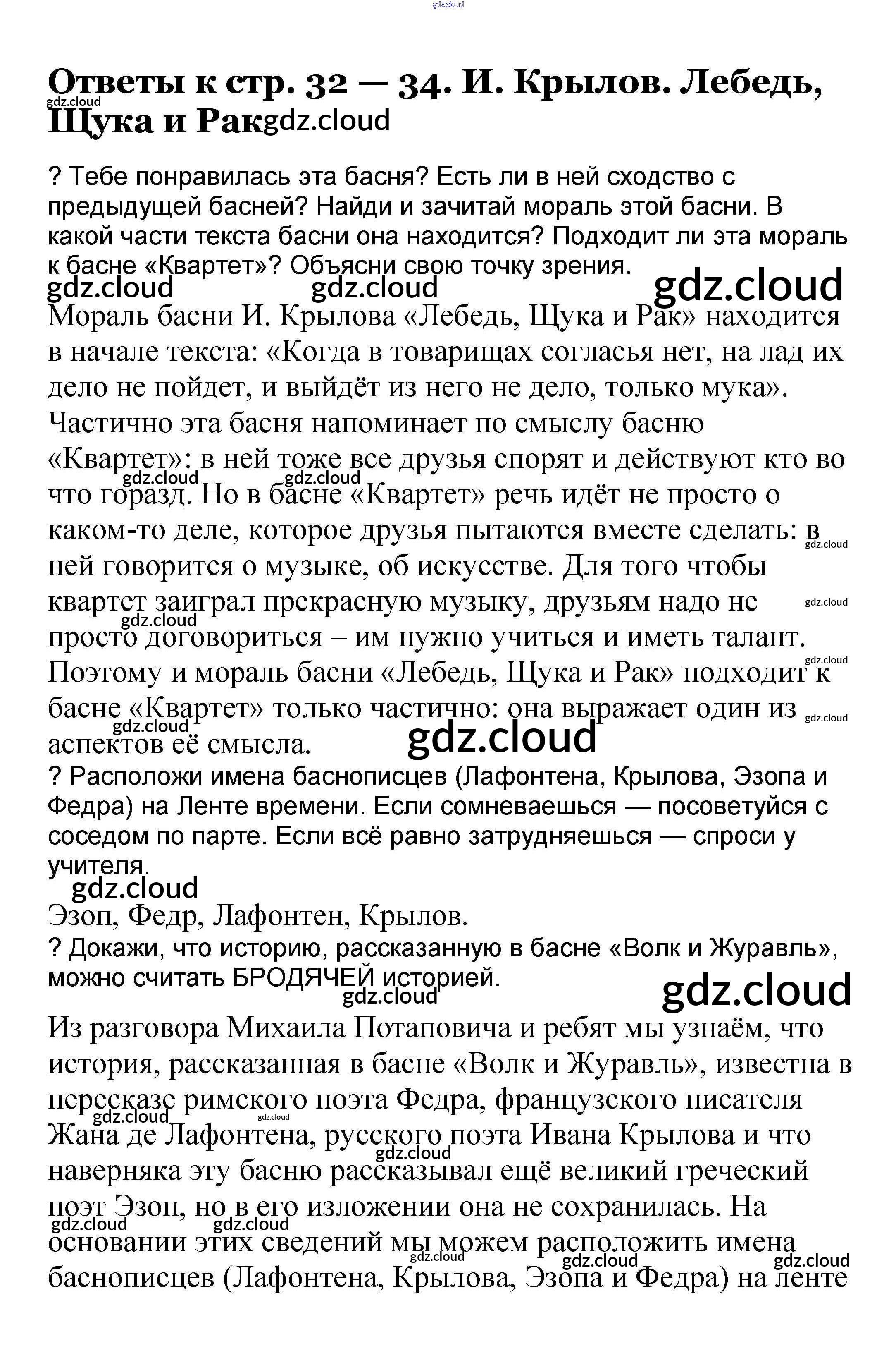 Ответ на задание 32-34 Учебник Литература за 3 (третий) класс Чуракова Перспективная начальная школа 2017 Часть 1, 2