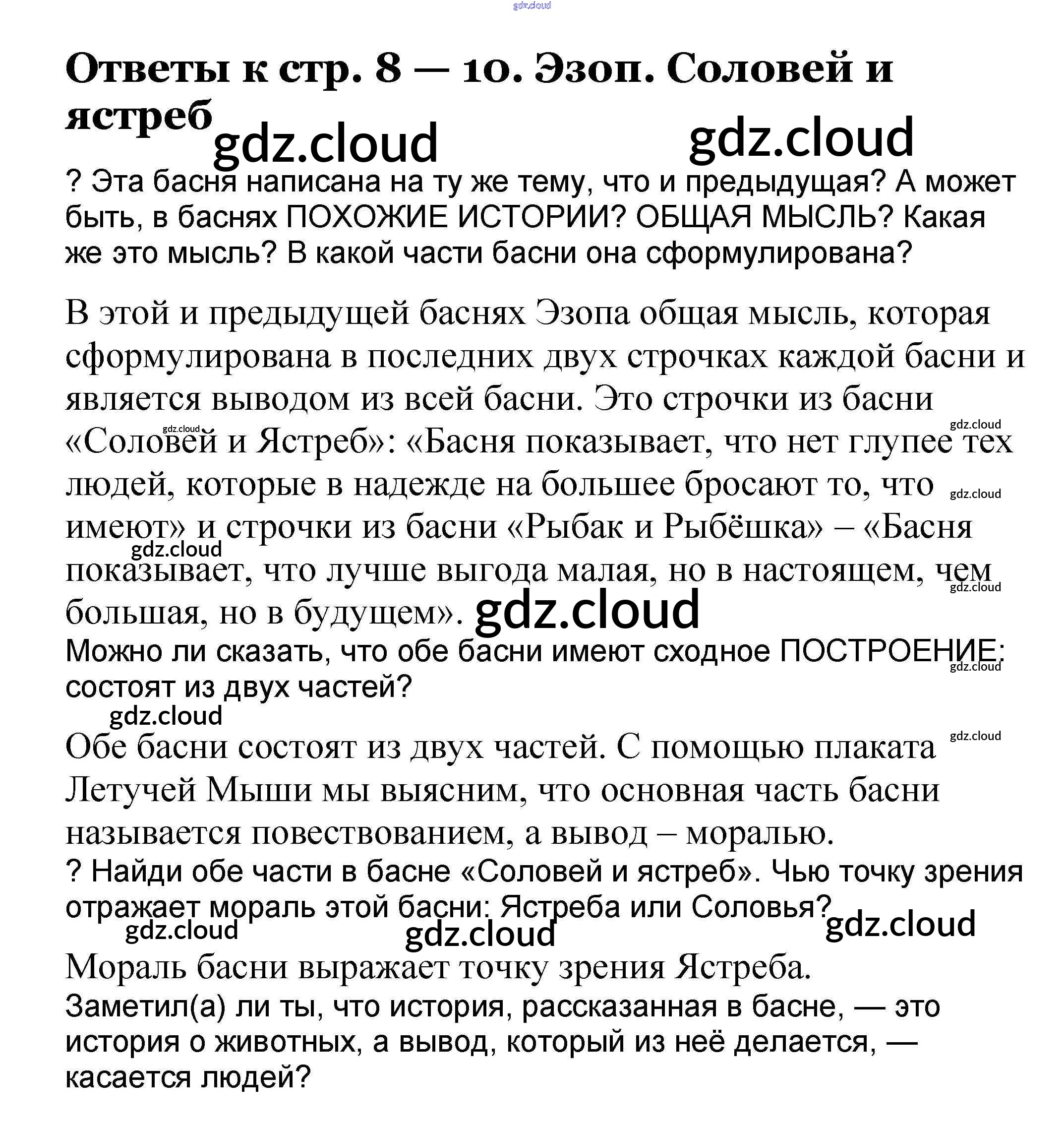 Ответ на задание 8-10 Учебник Литература за 3 (третий) класс Чуракова Перспективная начальная школа 2017 Часть 1, 2