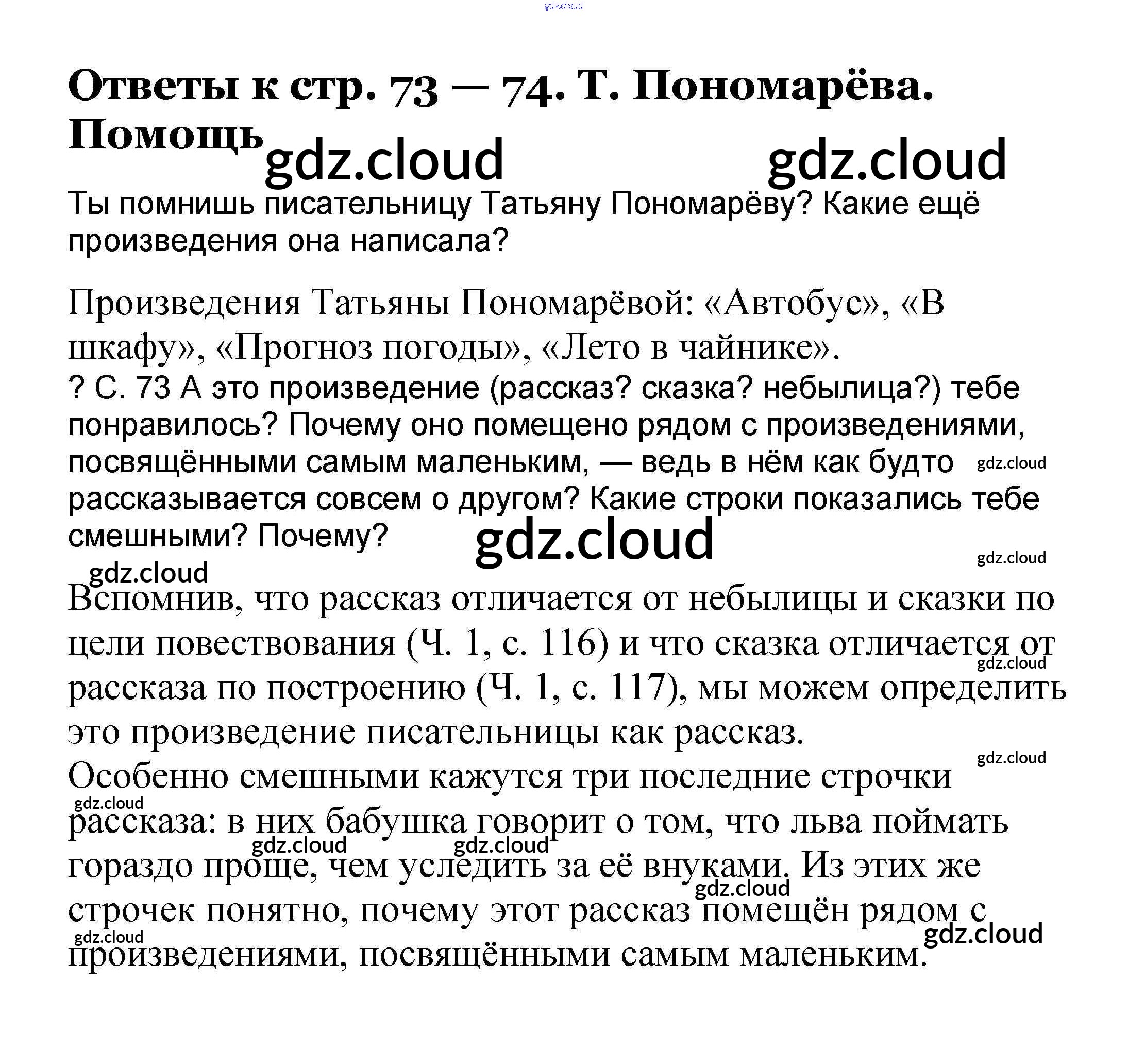 Ответ на задание 73-74 Учебник Литература за 3 (третий) класс Чуракова Перспективная начальная школа 2017 Часть 1, 2