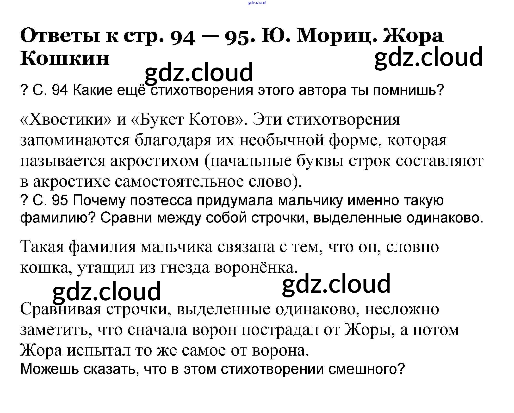 Ответ на задание 94-95 Учебник Литература за 3 (третий) класс Чуракова Перспективная начальная школа 2017 Часть 1, 2