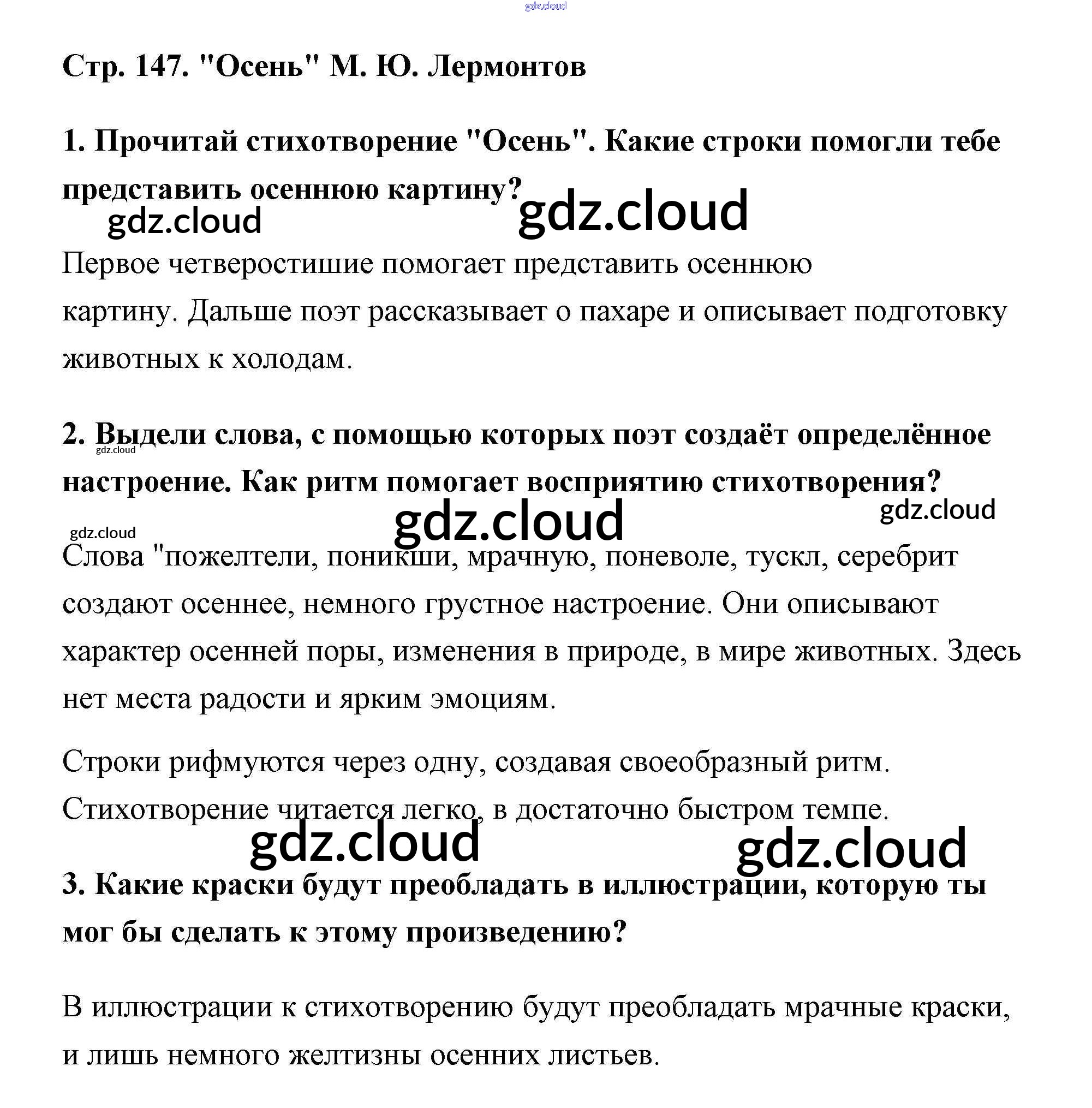 Ответ на задание стр.147 Учебник Литература за 3 (третий) класс Климанова, Горецкий, Голованова Школа России 2018 Часть 1, 2