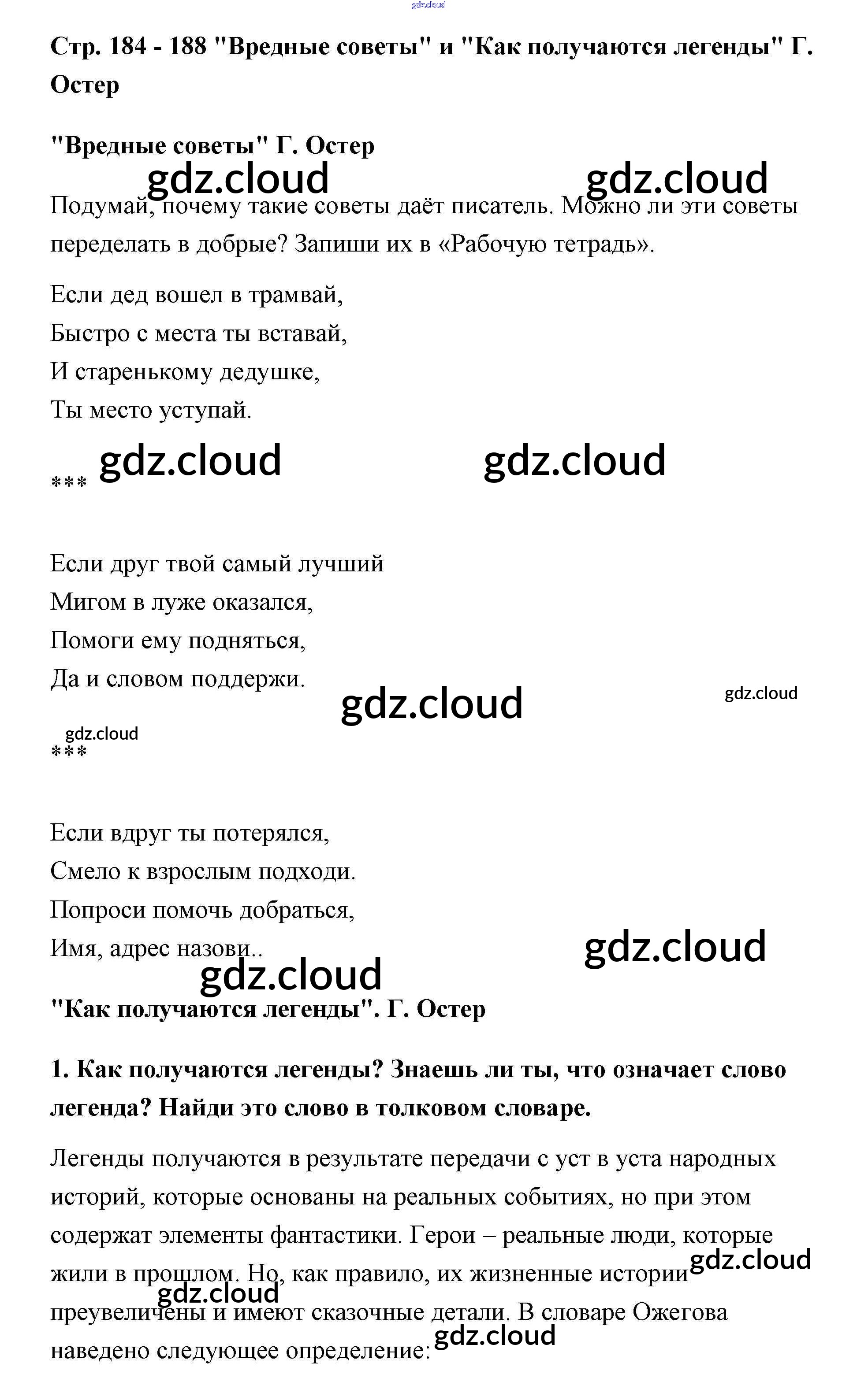 Ответ на задание стр.184 Учебник Литература за 3 (третий) класс Климанова, Горецкий, Голованова Школа России 2018 Часть 1, 2