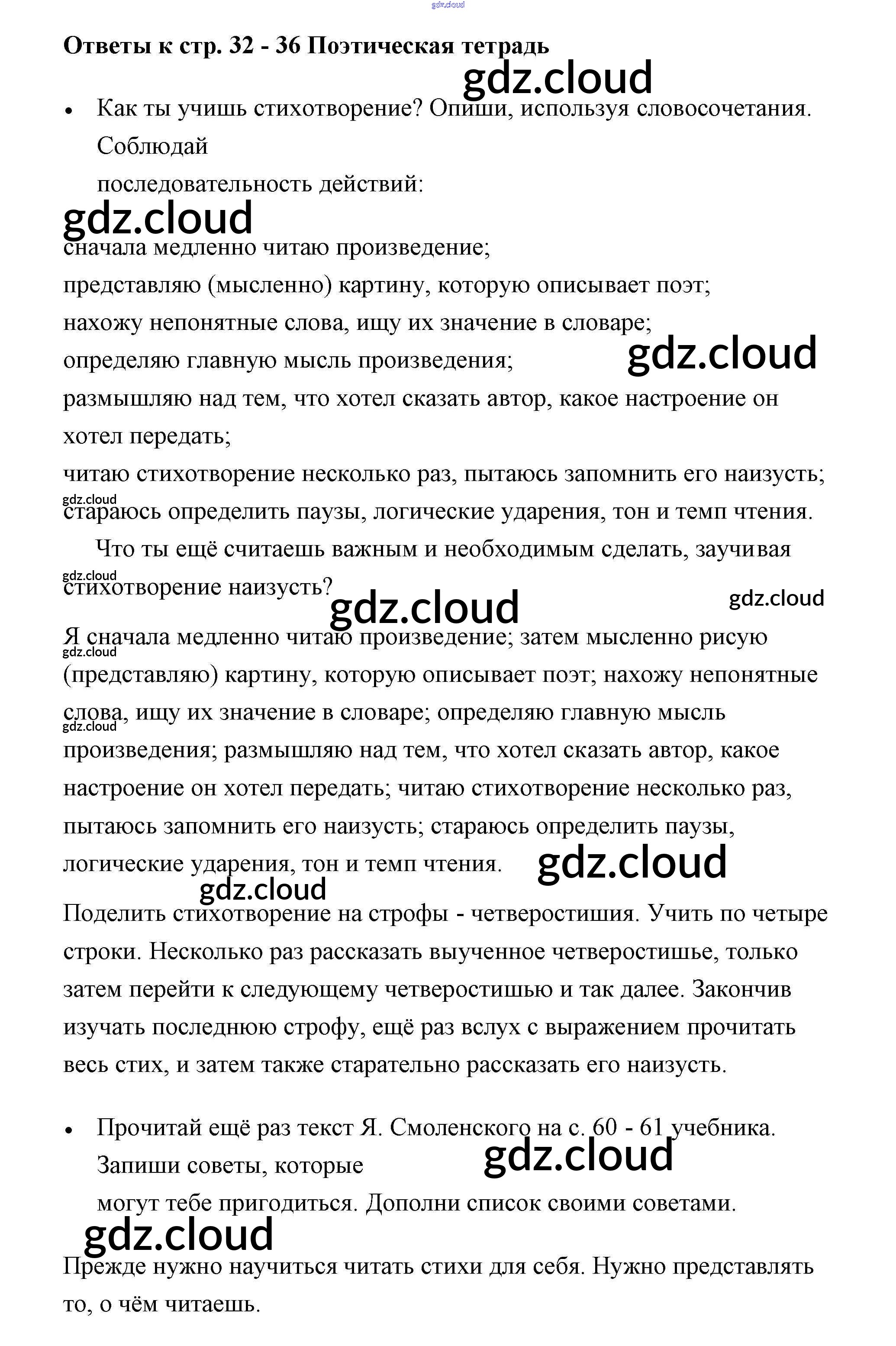 Ответ на задание 32-36 Рабочая тетрадь Литература за 3 (третий) класс Бойкина, Виноградская Школа России 2018