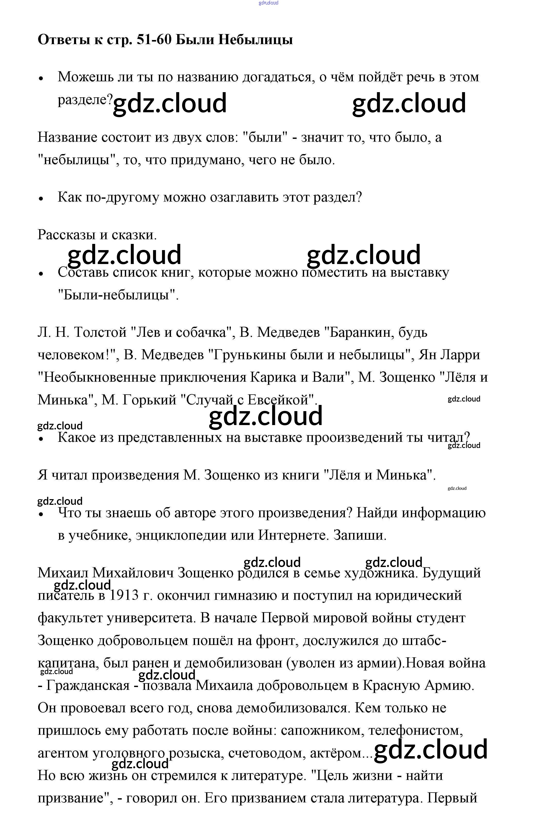 Ответ на задание 51-60 Рабочая тетрадь Литература за 3 (третий) класс Бойкина, Виноградская Школа России 2018