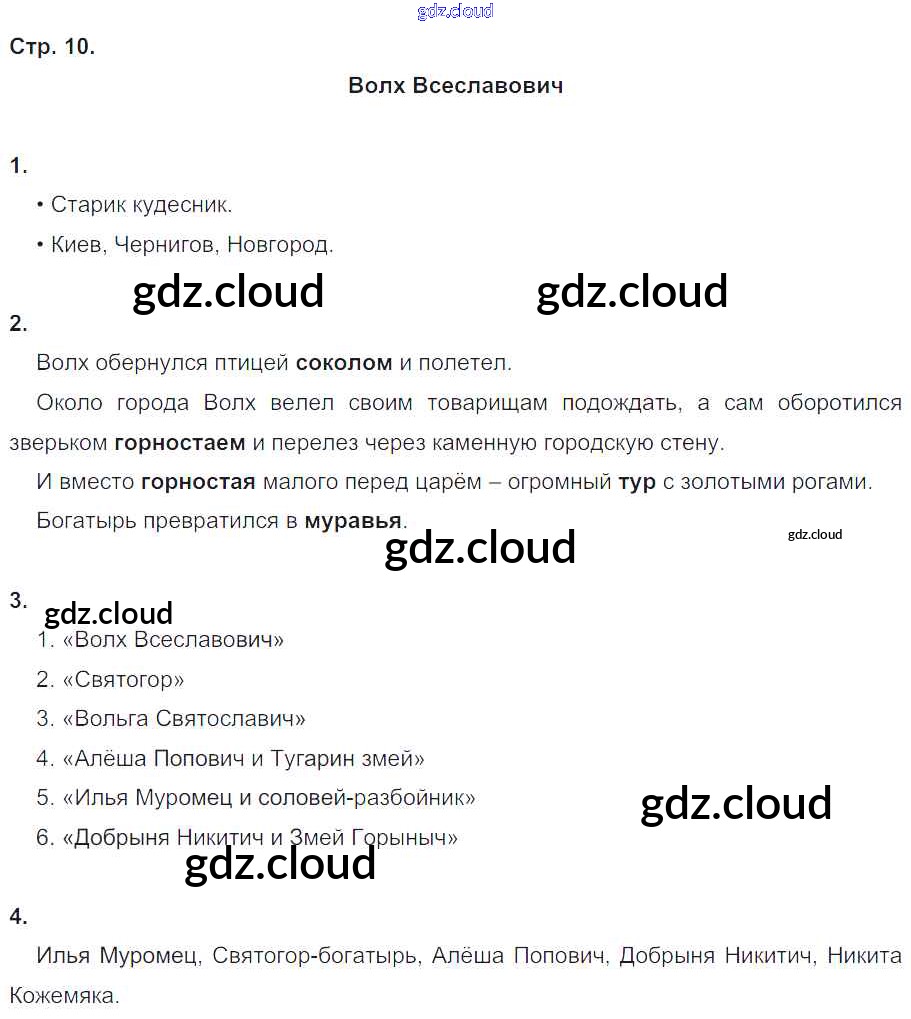 Ответ на задание стр.10 Рабочая тетрадь Литература за 4 (четвертый) класс Ефросинина Начальная школа XXI века 2020 Часть 1, 2