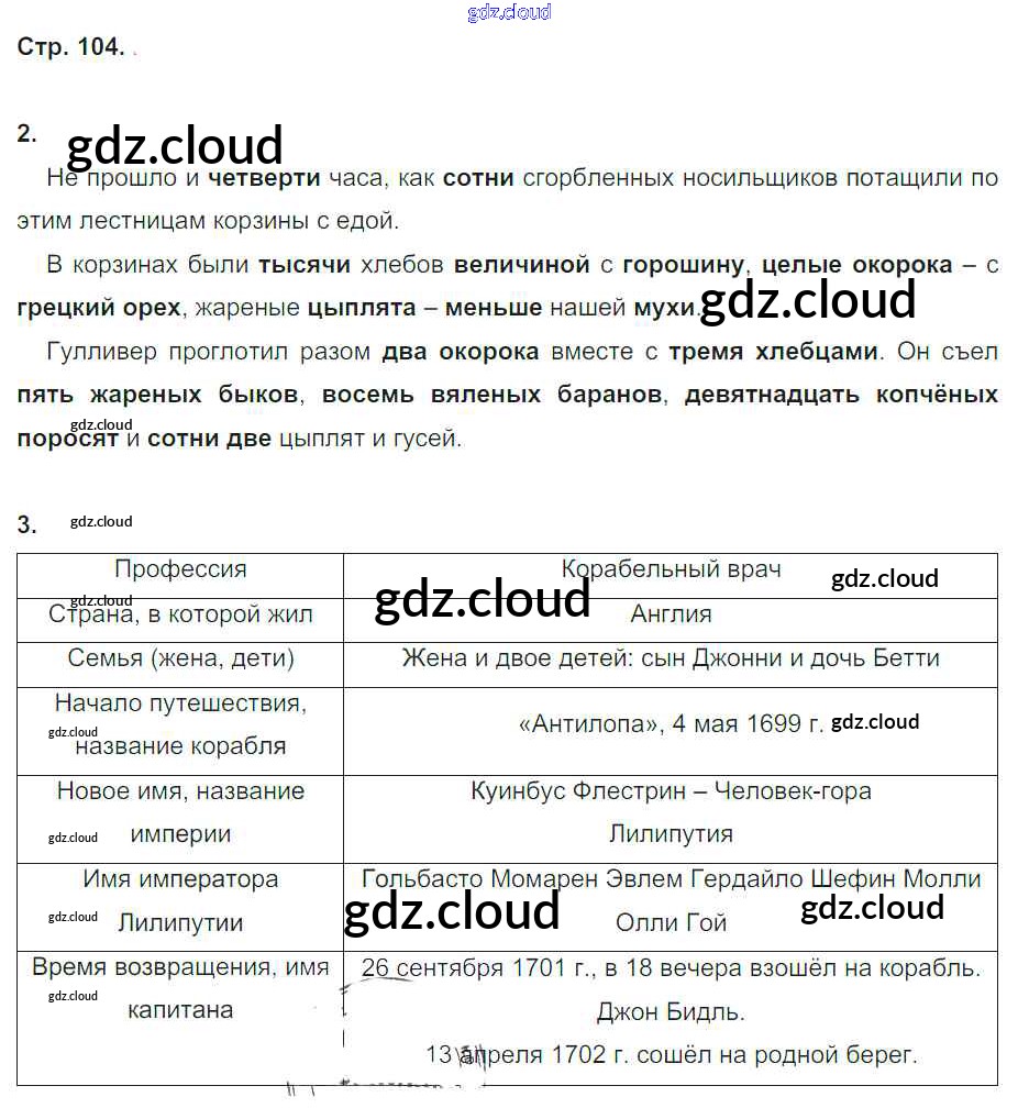 Ответ на задание стр.104 Рабочая тетрадь Литература за 4 (четвертый) класс Ефросинина Начальная школа XXI века 2020 Часть 1, 2