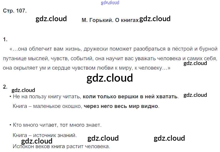 Ответ на задание стр.107 Рабочая тетрадь Литература за 4 (четвертый) класс Ефросинина Начальная школа XXI века 2020 Часть 1, 2