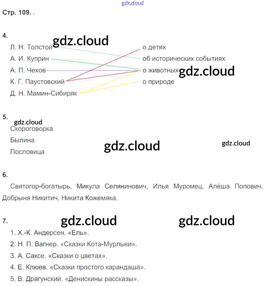 Ответ на задание стр.109 Рабочая тетрадь Литература за 4 (четвертый) класс Ефросинина Начальная школа XXI века 2020 Часть 1, 2