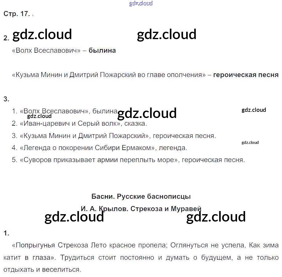 Ответ на задание стр.17 Рабочая тетрадь Литература за 4 (четвертый) класс Ефросинина Начальная школа XXI века 2020 Часть 1, 2