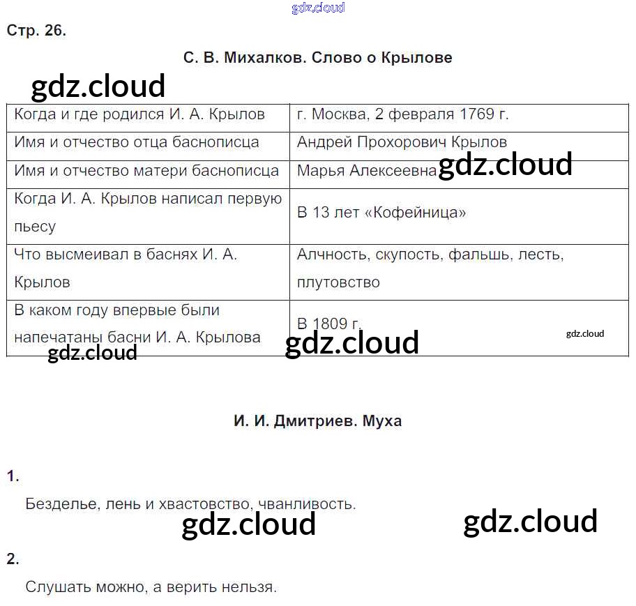 Ответ на задание стр.26 Рабочая тетрадь Литература за 4 (четвертый) класс Ефросинина Начальная школа XXI века 2020 Часть 1, 2