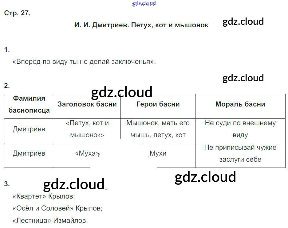 Ответ на задание стр.27 Рабочая тетрадь Литература за 4 (четвертый) класс Ефросинина Начальная школа XXI века 2020 Часть 1, 2