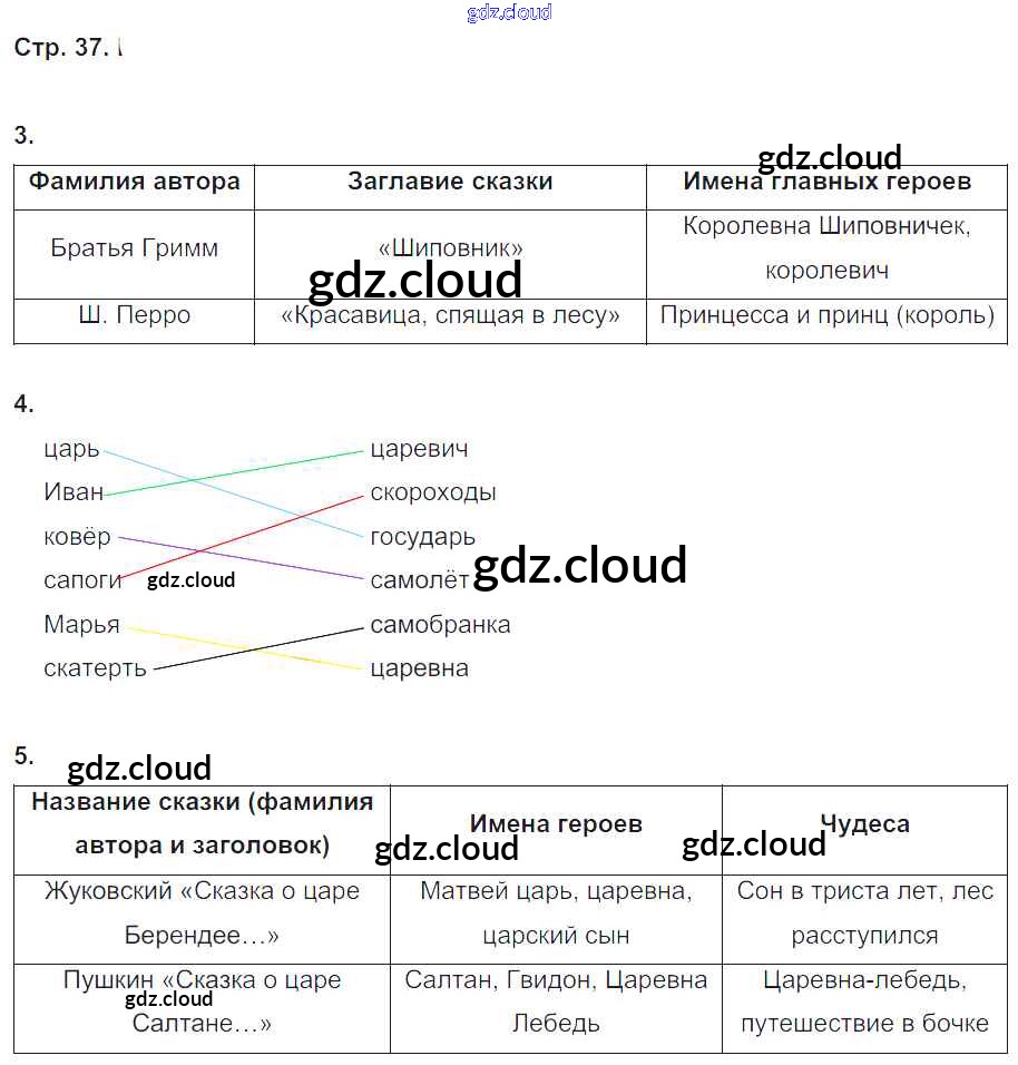 Ответ на задание стр.37 Рабочая тетрадь Литература за 4 (четвертый) класс Ефросинина Начальная школа XXI века 2020 Часть 1, 2