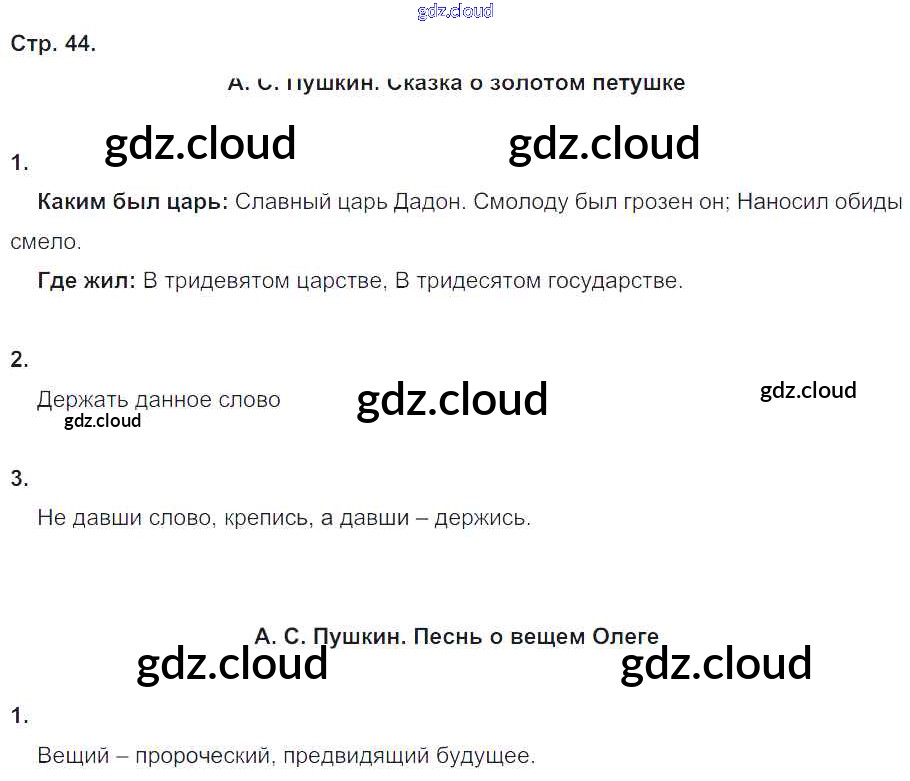 Ответ на задание стр.44 Рабочая тетрадь Литература за 4 (четвертый) класс Ефросинина Начальная школа XXI века 2020 Часть 1, 2