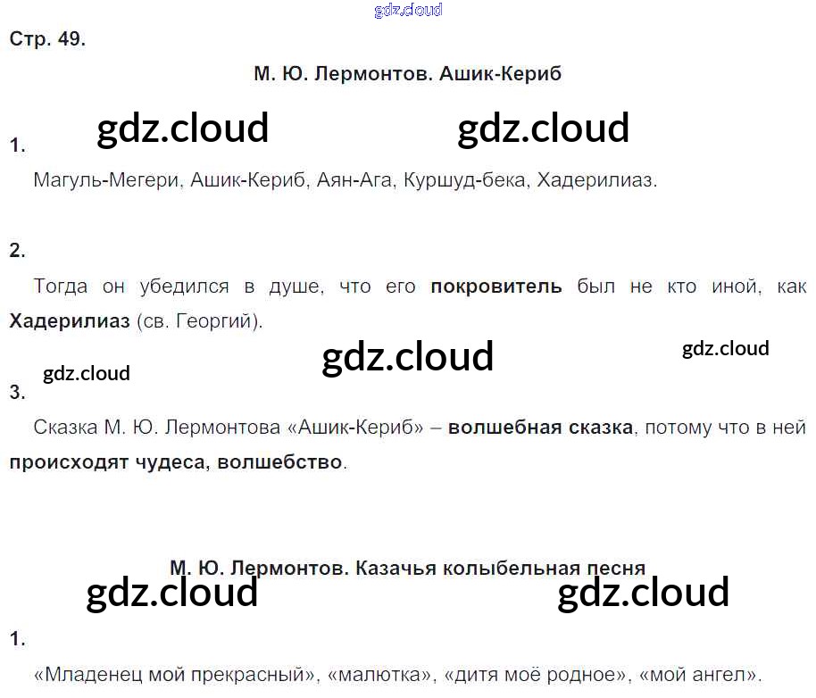 Ответ на задание стр.49 Рабочая тетрадь Литература за 4 (четвертый) класс Ефросинина Начальная школа XXI века 2020 Часть 1, 2