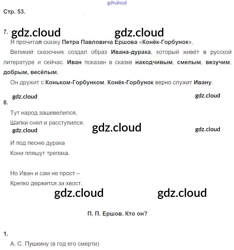Ответ на задание стр.53 Рабочая тетрадь Литература за 4 (четвертый) класс Ефросинина Начальная школа XXI века 2020 Часть 1, 2