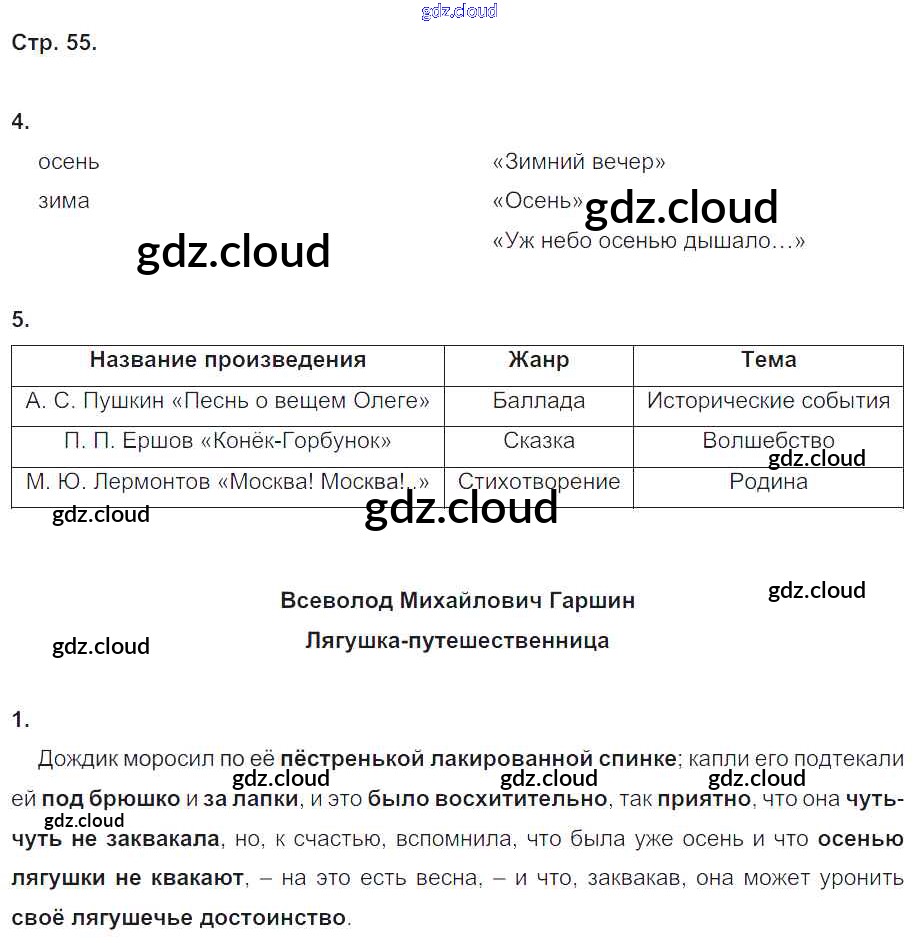 Ответ на задание стр.55 Рабочая тетрадь Литература за 4 (четвертый) класс Ефросинина Начальная школа XXI века 2020 Часть 1, 2