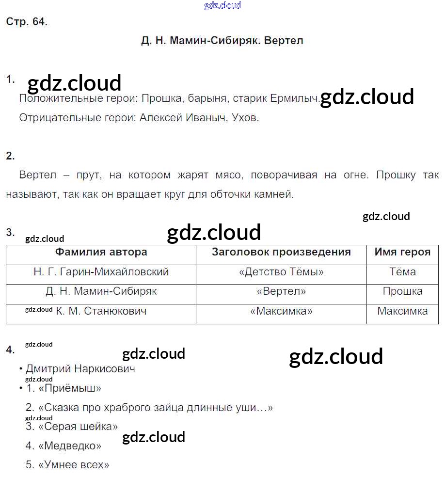Ответ на задание стр.64 Рабочая тетрадь Литература за 4 (четвертый) класс Ефросинина Начальная школа XXI века 2020 Часть 1, 2