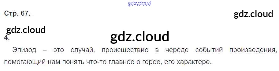 Ответ на задание стр.67 Рабочая тетрадь Литература за 4 (четвертый) класс Ефросинина Начальная школа XXI века 2020 Часть 1, 2