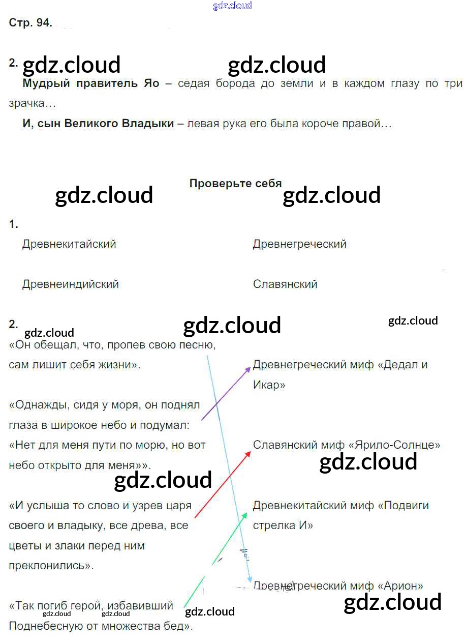 Ответ на задание стр.94 Рабочая тетрадь Литература за 4 (четвертый) класс Ефросинина Начальная школа XXI века 2020 Часть 1, 2