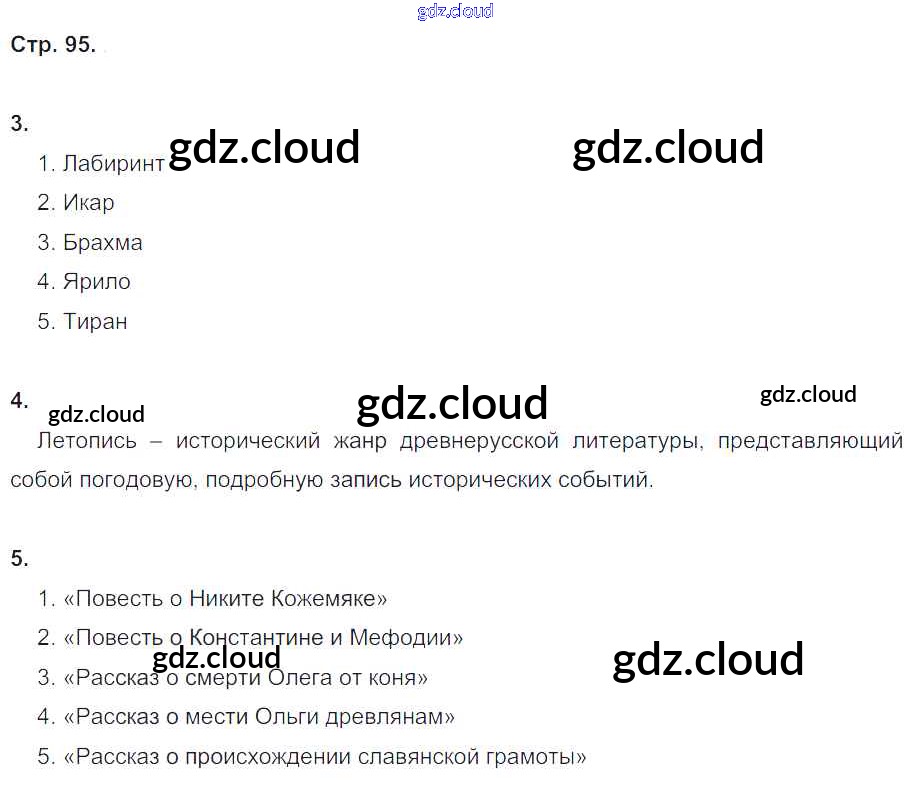 Ответ на задание стр.95 Рабочая тетрадь Литература за 4 (четвертый) класс Ефросинина Начальная школа XXI века 2020 Часть 1, 2
