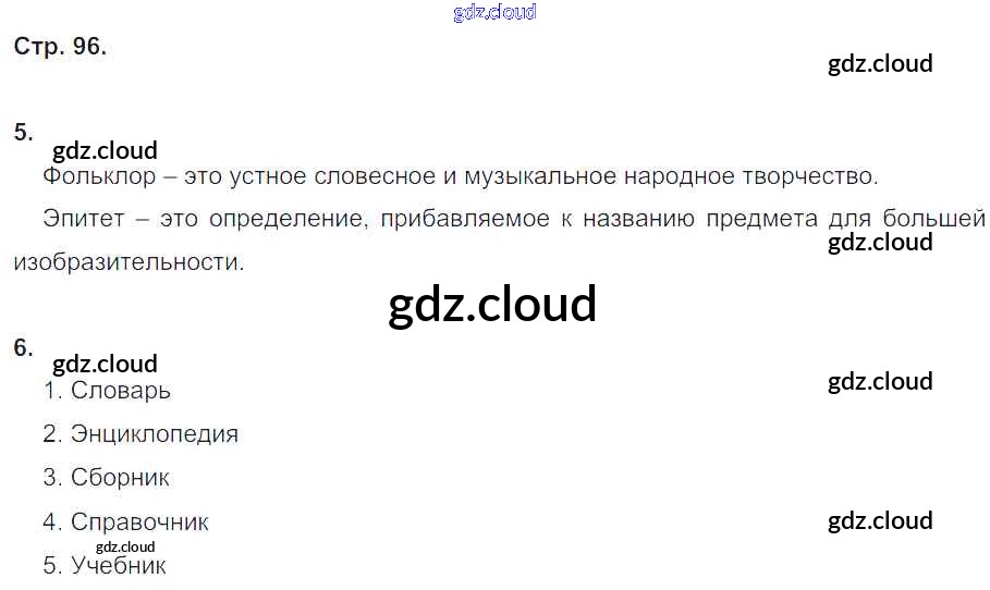 Ответ на задание стр.96 Рабочая тетрадь Литература за 4 (четвертый) класс Ефросинина Начальная школа XXI века 2020 Часть 1, 2