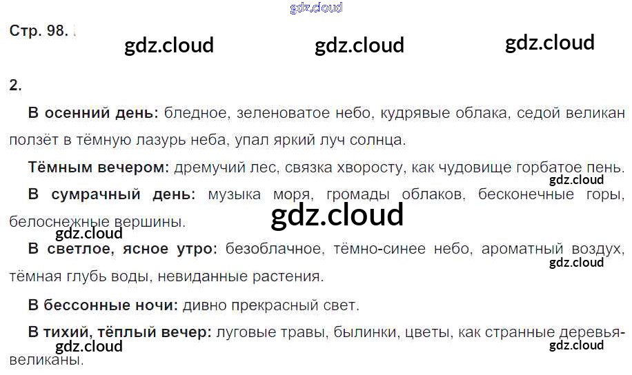 Ответ на задание стр.98 Рабочая тетрадь Литература за 4 (четвертый) класс Ефросинина Начальная школа XXI века 2020 Часть 1, 2