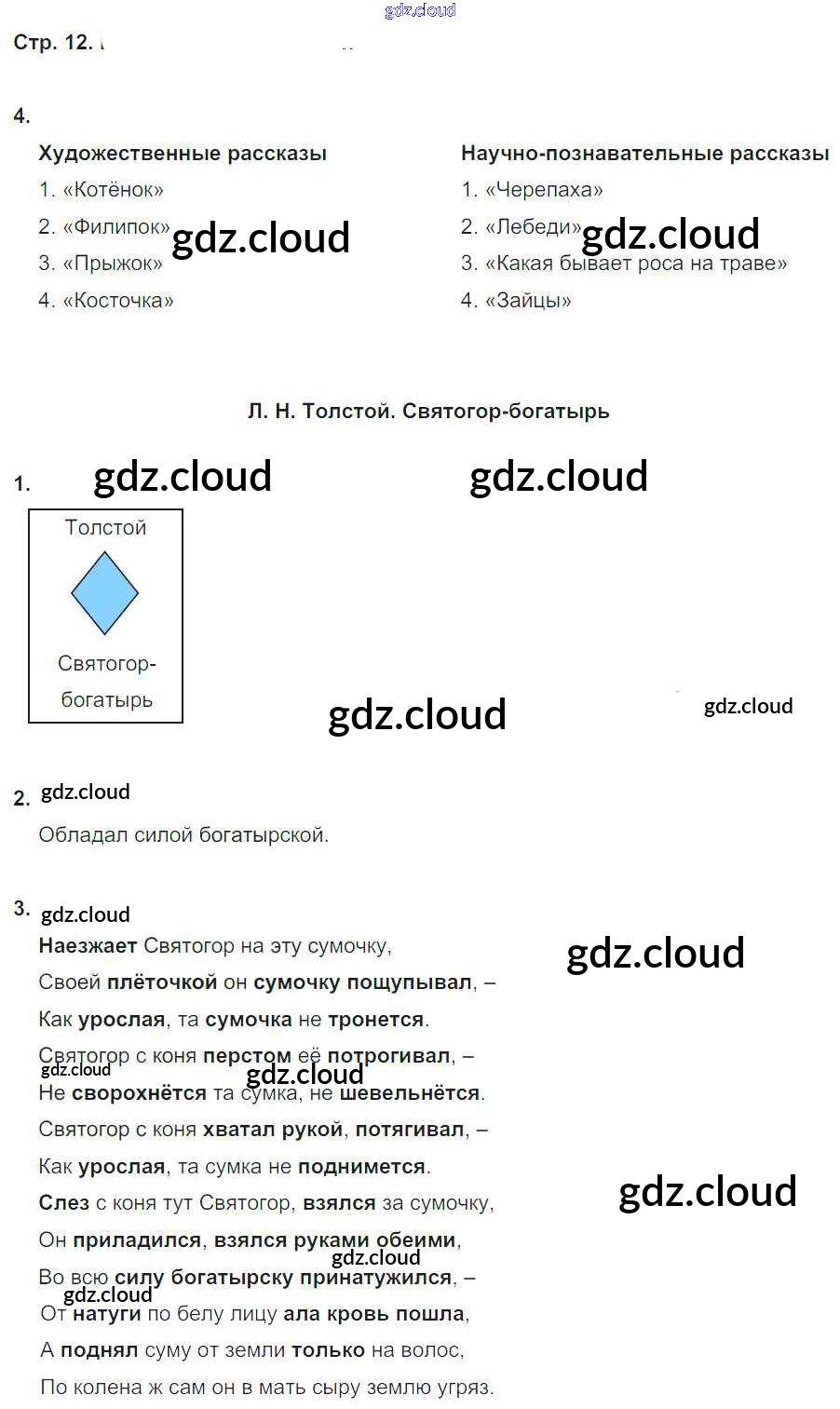 Ответ на задание стр.12 Рабочая тетрадь Литература за 4 (четвертый) класс Ефросинина Начальная школа XXI века 2020 Часть 1, 2