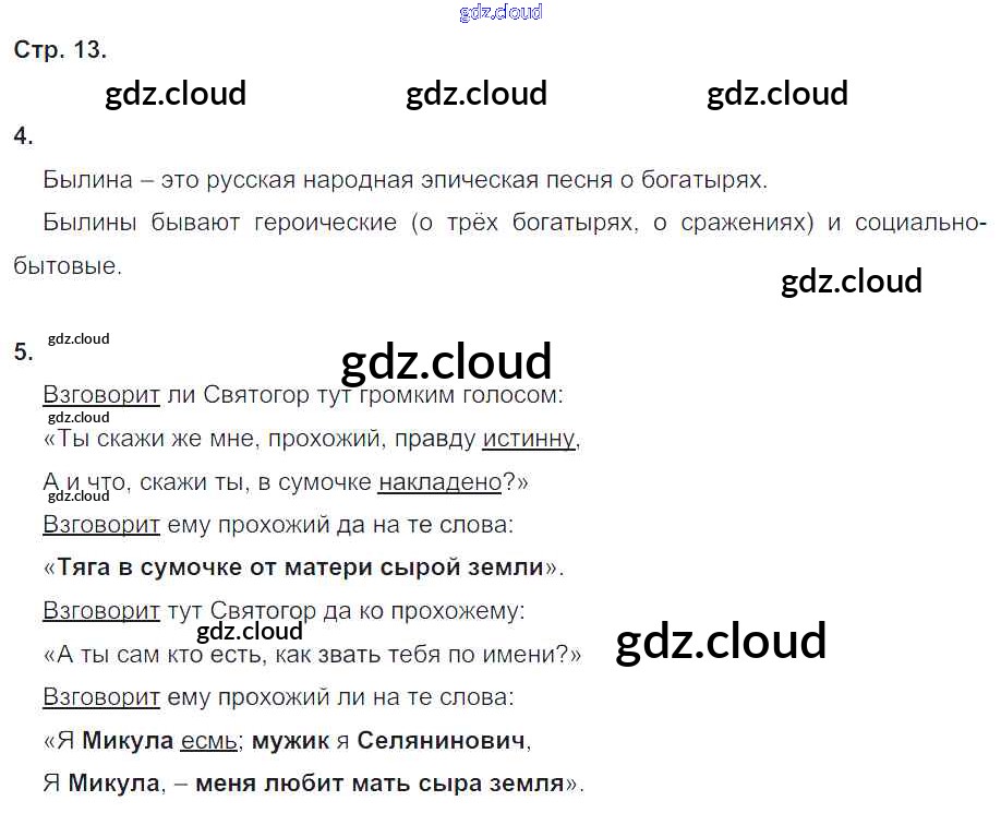 Ответ на задание стр.13 Рабочая тетрадь Литература за 4 (четвертый) класс Ефросинина Начальная школа XXI века 2020 Часть 1, 2