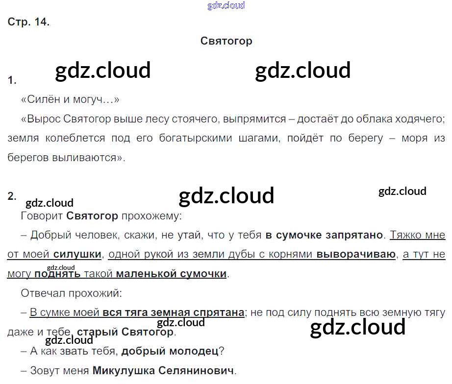 Ответ на задание стр.14 Рабочая тетрадь Литература за 4 (четвертый) класс Ефросинина Начальная школа XXI века 2020 Часть 1, 2