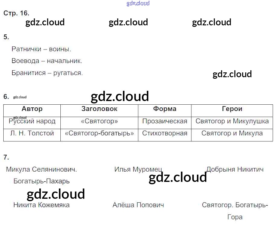 Ответ на задание стр.16 Рабочая тетрадь Литература за 4 (четвертый) класс Ефросинина Начальная школа XXI века 2020 Часть 1, 2
