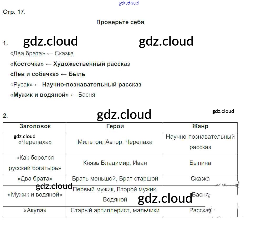 Ответ на задание стр.17 Рабочая тетрадь Литература за 4 (четвертый) класс Ефросинина Начальная школа XXI века 2020 Часть 1, 2