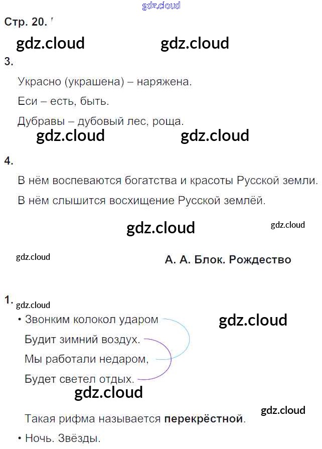 Ответ на задание стр.20 Рабочая тетрадь Литература за 4 (четвертый) класс Ефросинина Начальная школа XXI века 2020 Часть 1, 2