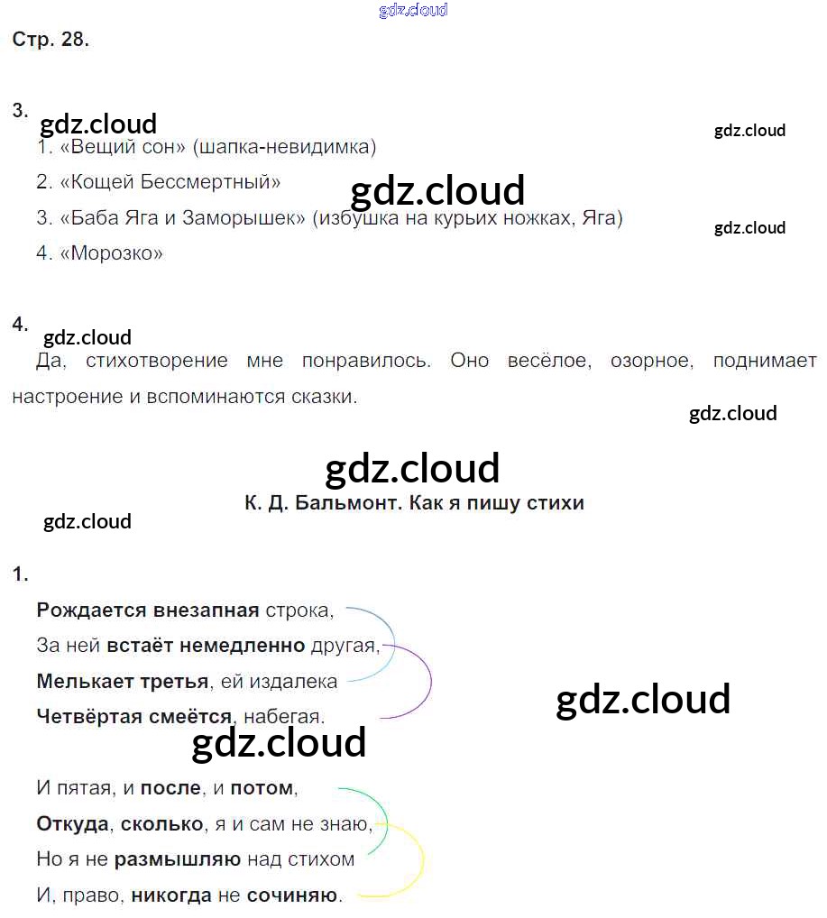 Ответ на задание стр.28 Рабочая тетрадь Литература за 4 (четвертый) класс Ефросинина Начальная школа XXI века 2020 Часть 1, 2