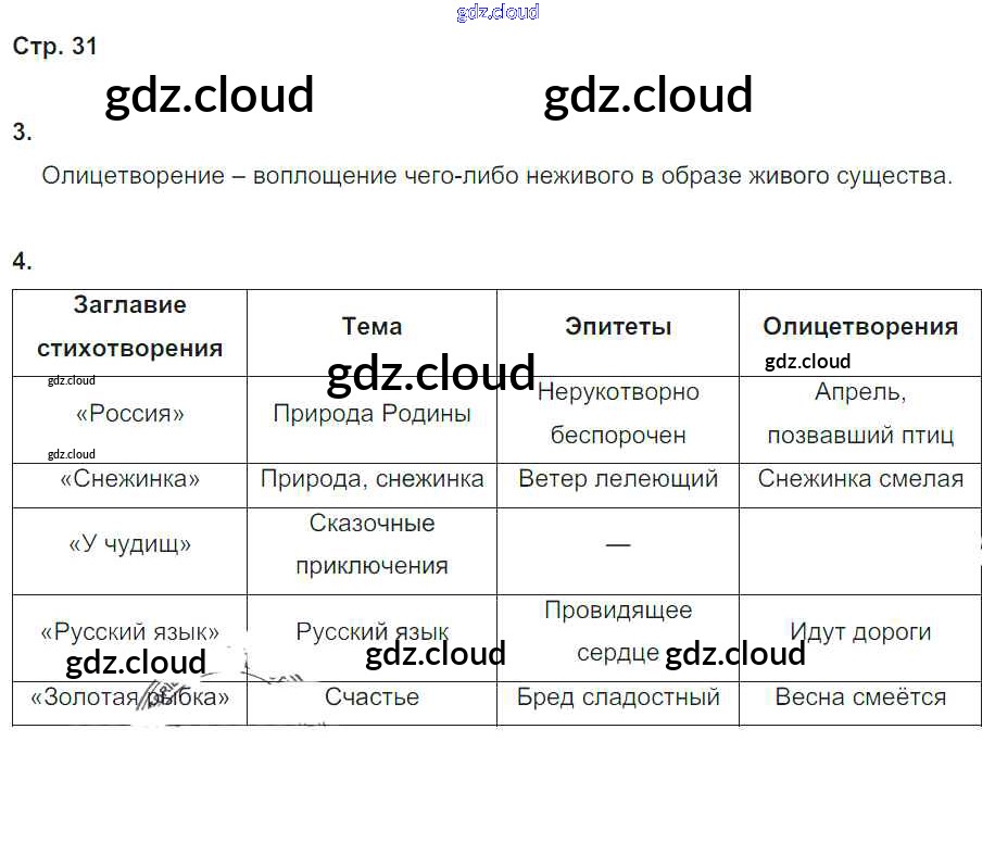 Ответ на задание стр.31 Рабочая тетрадь Литература за 4 (четвертый) класс Ефросинина Начальная школа XXI века 2020 Часть 1, 2