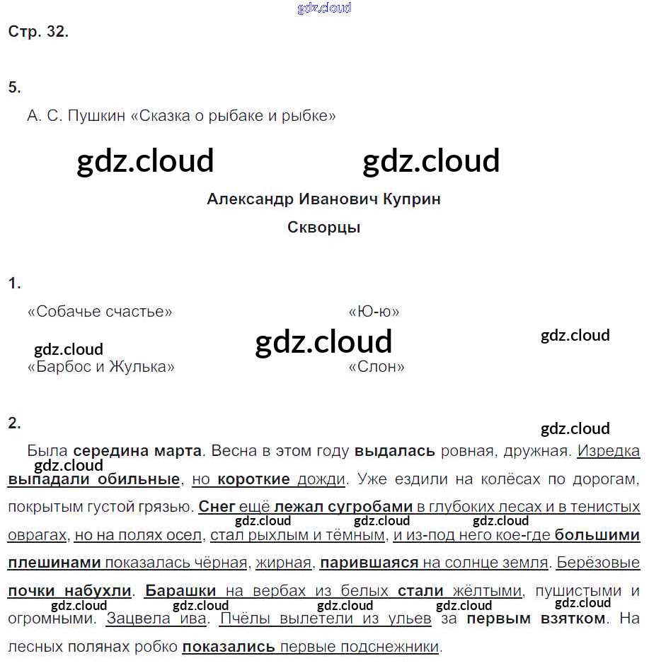 Ответ на задание стр.32 Рабочая тетрадь Литература за 4 (четвертый) класс Ефросинина Начальная школа XXI века 2020 Часть 1, 2