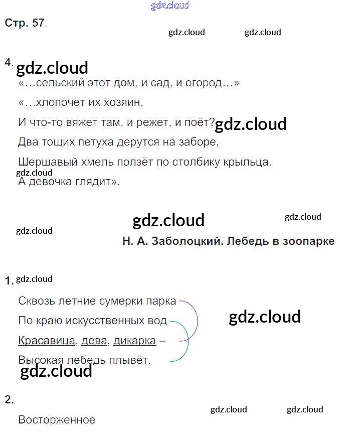 Ответ на задание стр.57 Рабочая тетрадь Литература за 4 (четвертый) класс Ефросинина Начальная школа XXI века 2020 Часть 1, 2