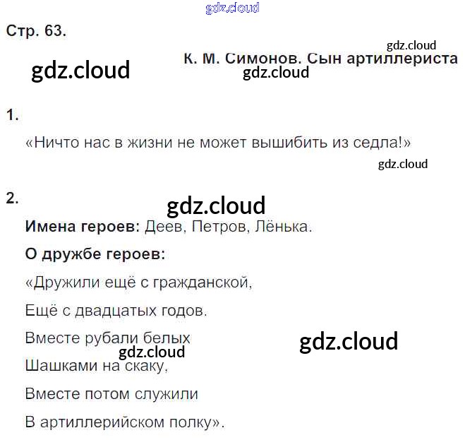 Ответ на задание стр.63 Рабочая тетрадь Литература за 4 (четвертый) класс Ефросинина Начальная школа XXI века 2020 Часть 1, 2